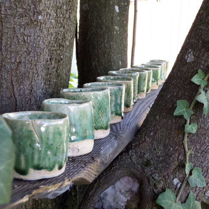 Vor vielen Jahren hatte ich ein Seminar in einem Seminarhaus dessen Betreiber gleichzeitig Keramiker war und eine entsprechende Werkstatt betrieb. In einer Pause fragte ich ihn, ob er mir mal zeigen könnte, wie das geht mit der Drehscheibe. Seitdem bin ich in Keramik verliebt. Sei es das Arbeiten auf der Scheibe, das Aufbauen von Gefäßen, das Abdrehen, das Herstellen und Anwenden von Glasuren, das Brennen ( Raku oder normaler Glattbrand) – ich bin immer wieder begeistert. Durch die Rückmeldung vieler Menschen ermutigt ( und dadurch dass ich mittlerweile ziemlich viele Keramiken hier stehen habe) ist diese Seite entstanden. Ich möchte Menschen an meiner Liebhaberei teilhaben lassen.