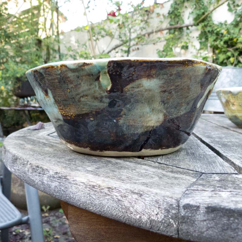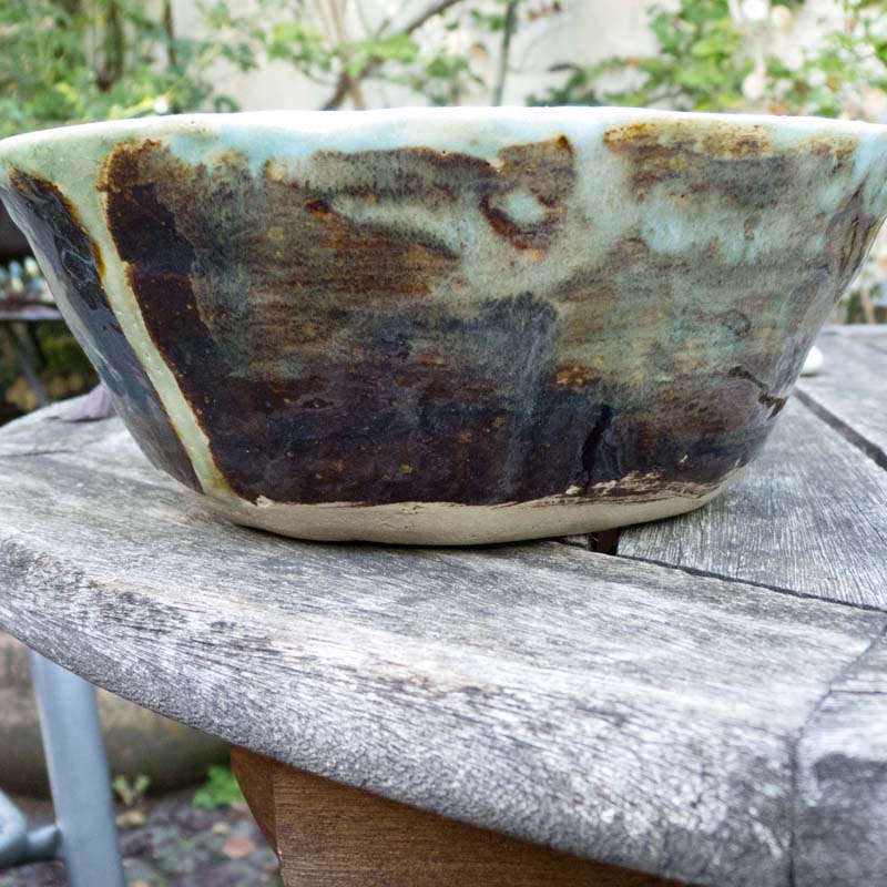 Es ist so ein großer Unterschied ob man aus einem ‘Fabrikgefäß’ – einem von Tausenden – seinen Tee oder seinen Kaffee trinkt, sein Müsli oder seine Suppe löffelt oder aus einem Einzelstück, einem Gefäß, welches so nur einmal auf der Welt existiert. Denn ich mache nur Einzelstücke. Das hat zwei Grũnde: ich habe nie gelernt, in Serie zu produzieren und ich würde das auch nicht wollen, da mir das langweilig würde. Und: ich bin immer wieder sehr überrascht, was da aus dem Ofen kommt – manchmal begeistert, manchmal eher weniger erfreut..Für mich ist es die Hauptsache, dass ich Freude habe, wenn ich meine Keramiken herstelle. Ich hoffe sehr, dass Du die gleiche Freude empfindest wenn du meine Töpfe anschaust – und dass Du Lust bekommst, so einen Topf dein Eigen zu nennen. Also dann: Viel Vergnügen !